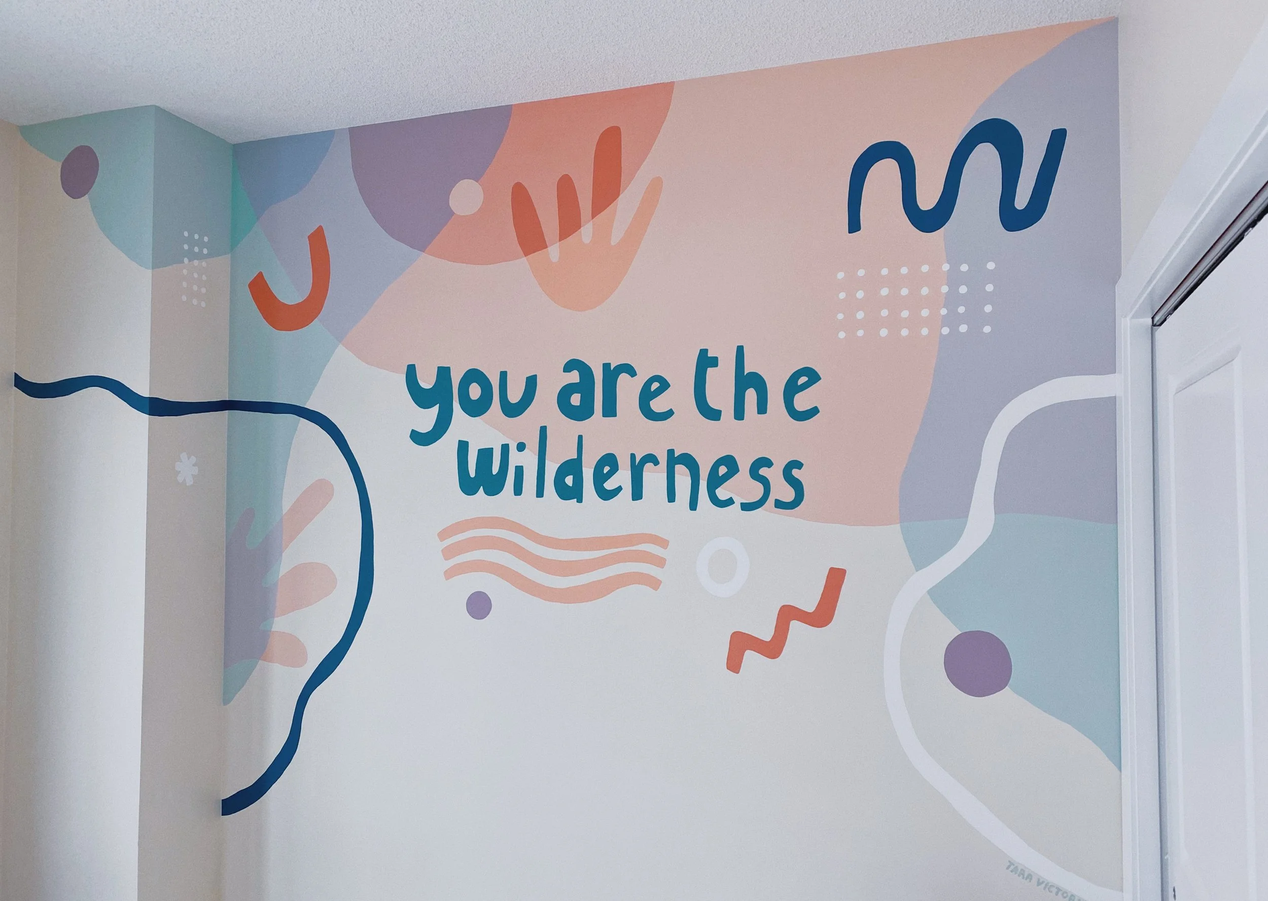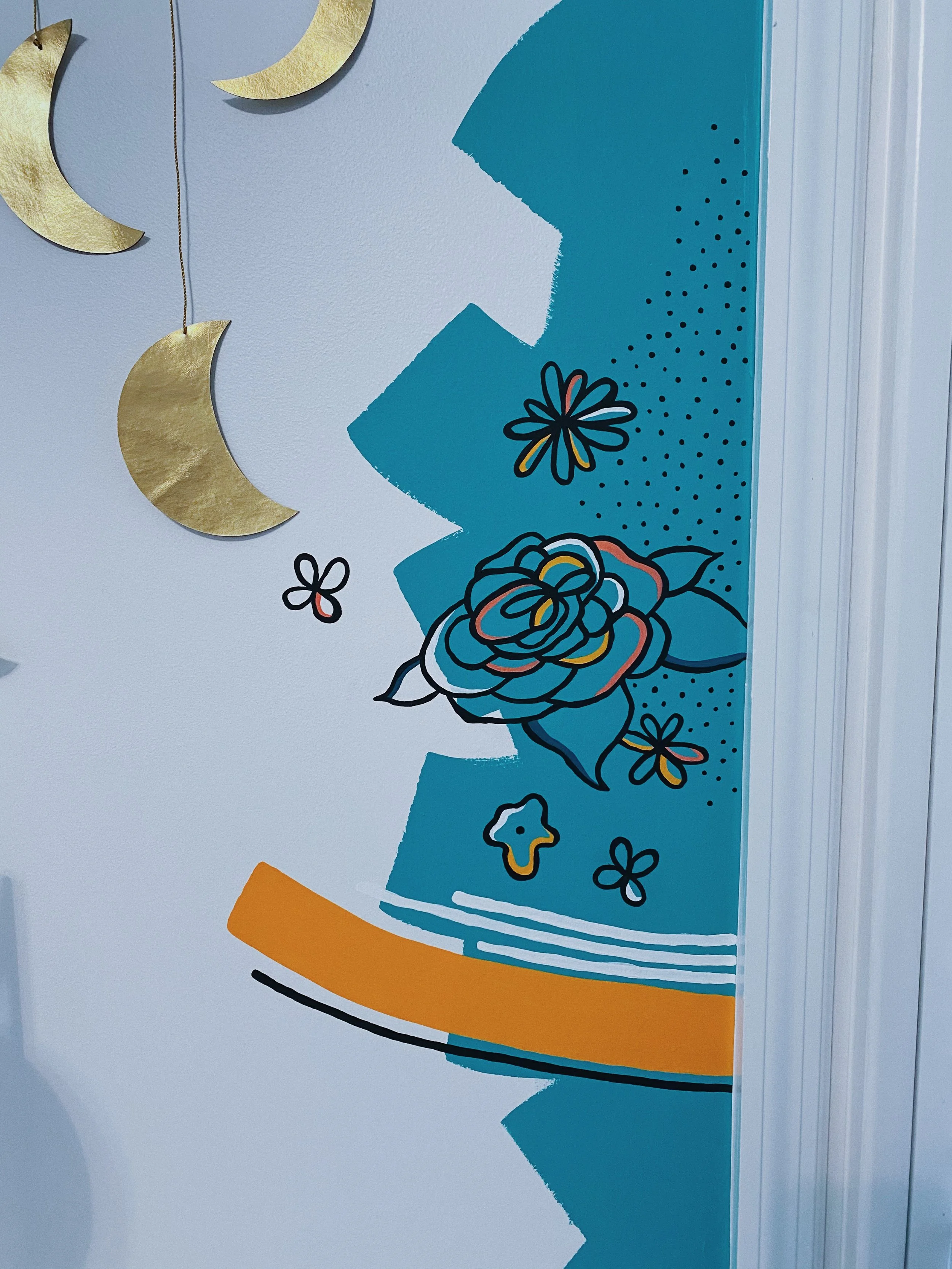 Using the brand elements I developed while branding Just Breathe for Kids, I painted a mural in their studio space in Columbus, GA. At the client’s request, I incorporated a participatory element by leaving one shape intentionally unfinished. I left behind paint and brushes so the kids could add their own touches, allowing them to make their mark and feel a sense of ownership and connection to the space.