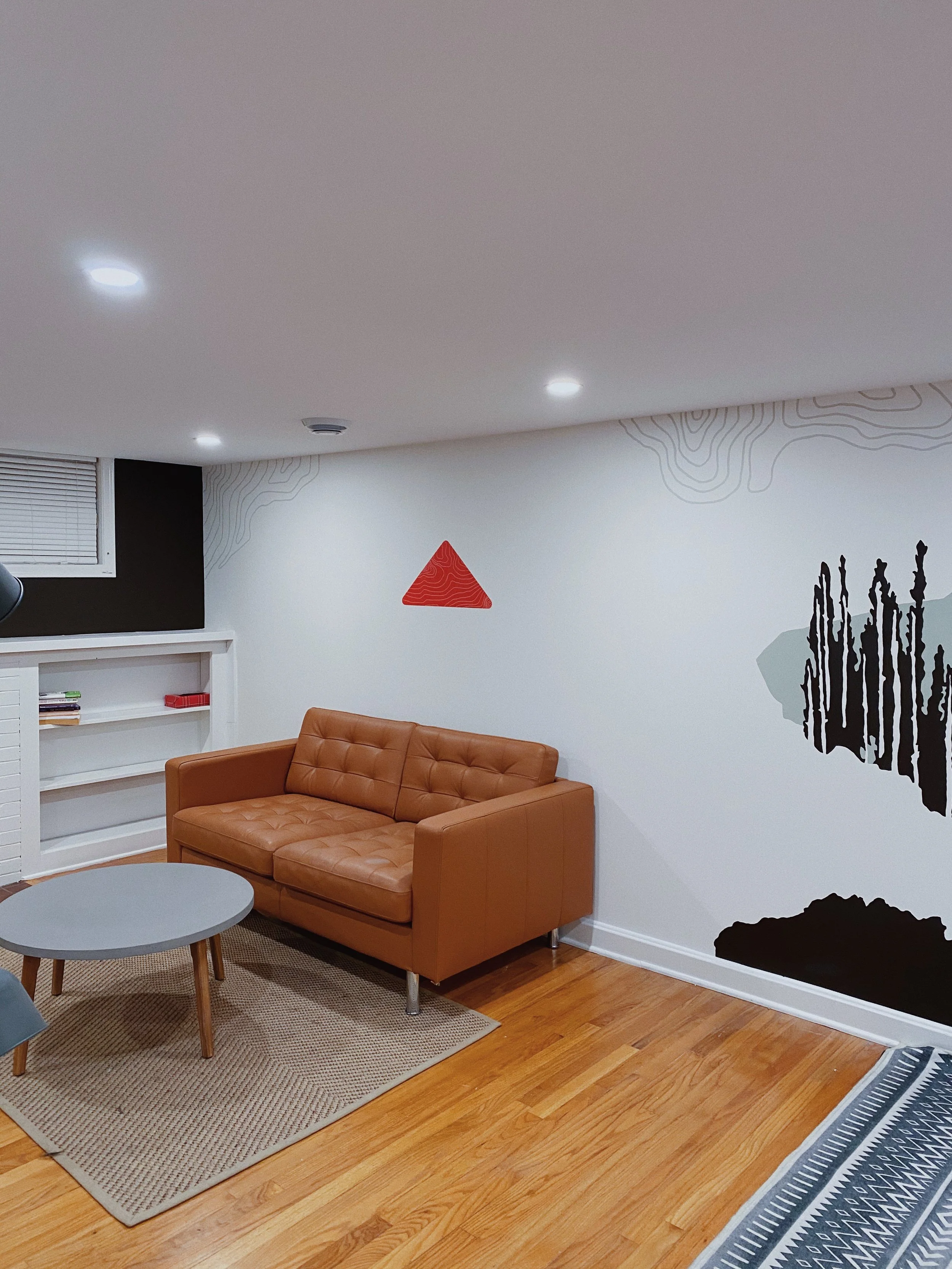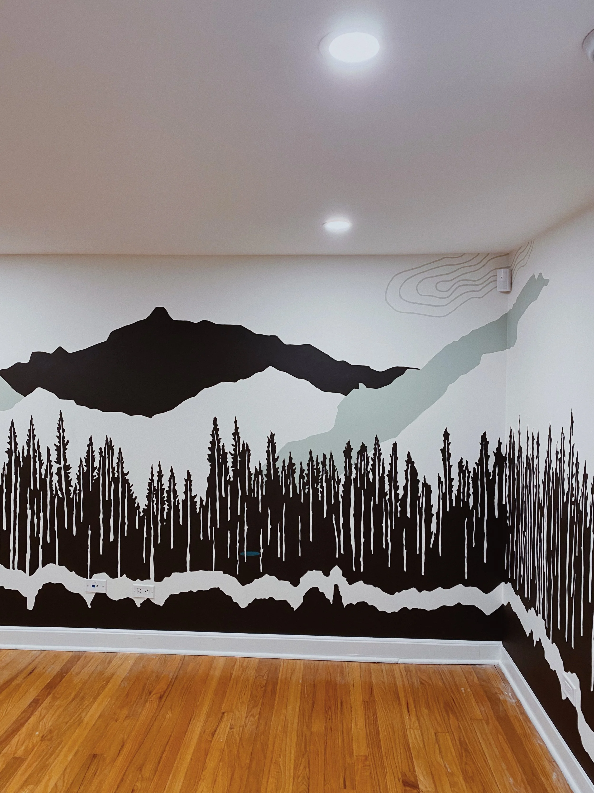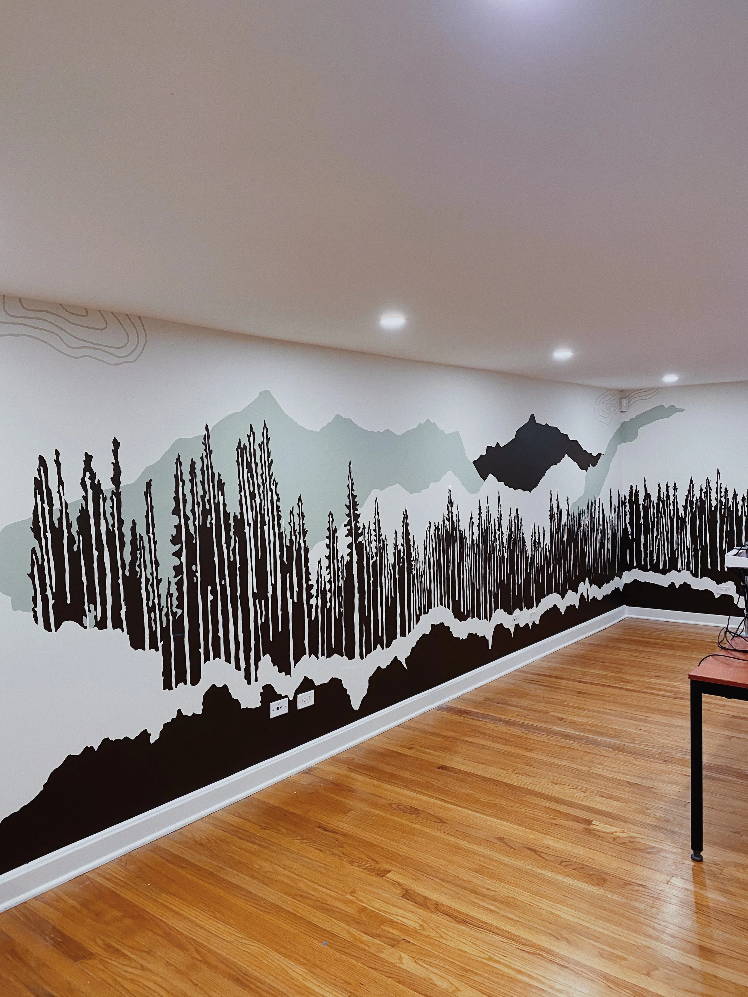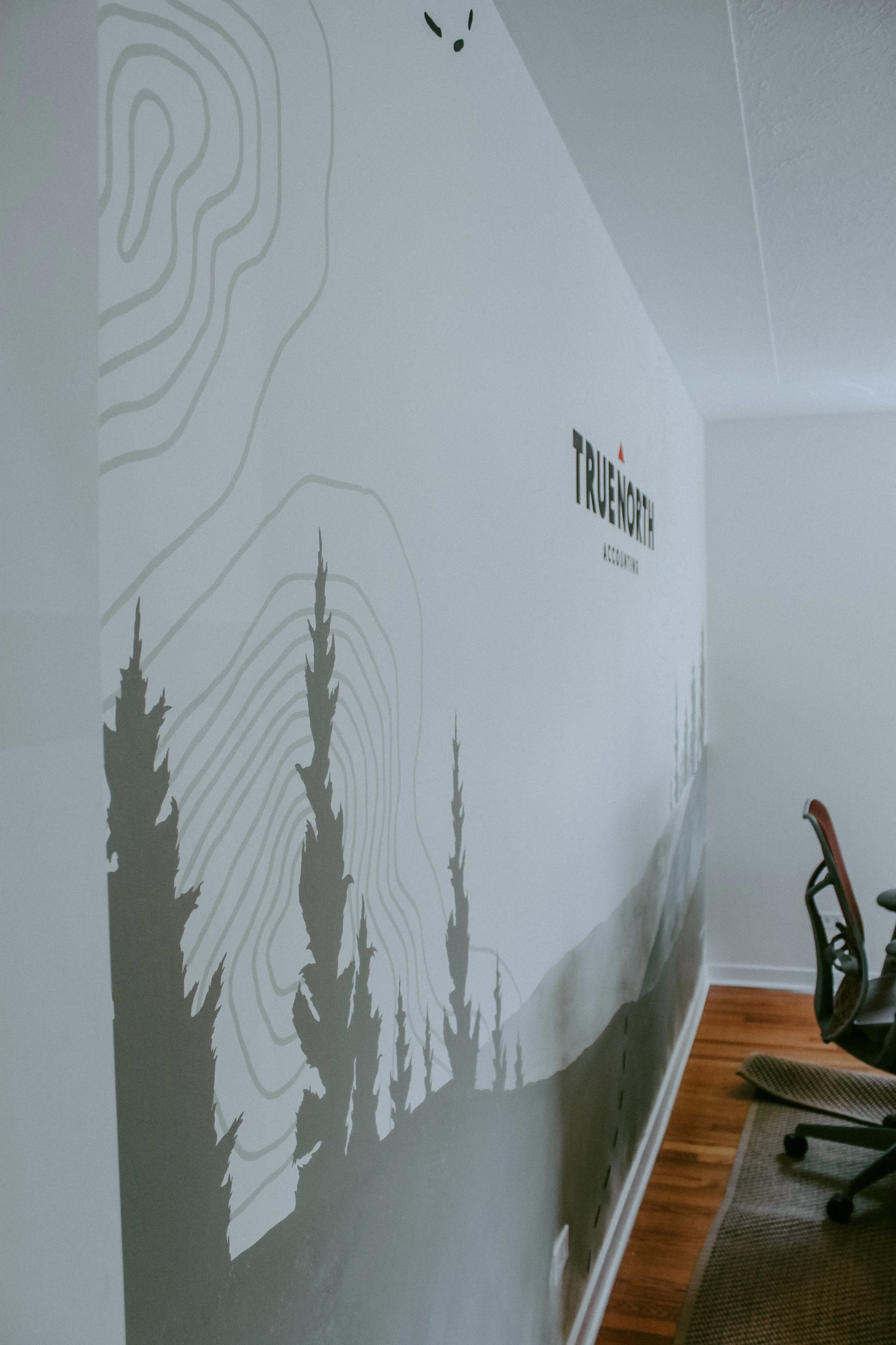 I painted a custom mural at True North’s front entrance, incorporating key brand elements and visuals that reflected their mission and identity. When the team later expanded their office into the basement level, I was invited back to create a second mural, adapting the design to suit the space while maintaining continuity with the original artwork and brand aesthetic.